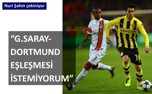 Galatasaray'ın Şampiyonlar Ligi'ndeki Schalke seferi için gittiğimiz Almanya'da zorlumaç öncesi gurbetçi yıldızlarımızdan Nuri Şahin, Şampiyonlar Ligi'nde çeyrek ya da yarı finalde Borussia Dortmund - Galatasaray eşleşmesini istemediğini dile getirdi.