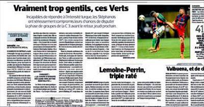 Bu yeşil gerçekten güzelmiş!" diyerek Saint-Etienne'in renklerine gönderme yaptı. Gazete ayrıca ilk maçta 1-0 yenilen takımların yüzde 59 oranında elendiğini yazarken, "