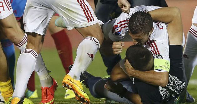 İki takım futbolcuları arasındaki gerilimin ardından bazı Sırp taraftarların meşale yakması ve sahaya girmesi üzerine maçın hakemi Martin Atkinson, karşılaşmayı durdurup soyunma odasına gitmiş, ardından yapılan anonsla maçın tatil edildiği duyurulmuştu.