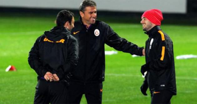 Florya Metin Oktay Tesisleri'nde gerçekleştirilen antrenman öncesinde Hamzaoğlu ve ekibi salonda futbolcularla tanıştı. Daha sonra antrenmana çıkan takımla saha içinde bir toplantı yapan Hamzaoğlu'nun, kısa bir görüşmede bulunduğu Wesley Sneijder ile şakalaşması dikkati çekti.