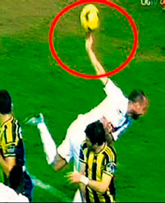 Fenerbahçe rakip yarı alanın ortalarından serbest vuruş kullandı. Ceza alanına yapılan ortada Mehmet Topal'ın kafa vuruşunda top Mehmet Akgün'e çarptı. Sarılacivertliler Hüseyin Göçek'e itiraz etti. Göçek 6. hakem Koray Gençerler'in uyarısıyla beyaz noktayı gösterdi. Mehmet Topal pozisyon için, "Yüzde yüz penaltı" dedi
