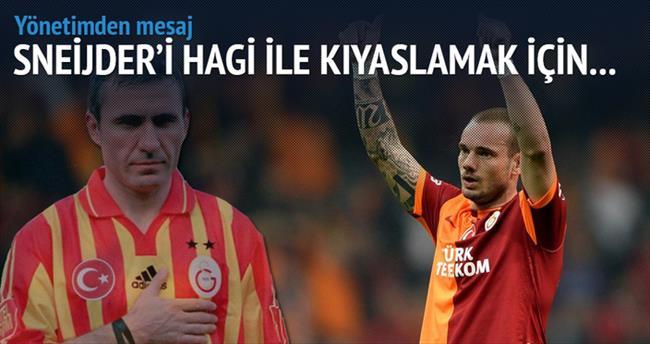 Sneijder'i Hagi ile kıyaslamamız için Sneijder'in de Hagi kadar Galatasaray'da oynamış olması gerek. Sneijder daha Hagi'nin yaptıklarını yapmadı ama dediğim gibi bu değerlendirme için Sneijder de Hagi kadar zaman geçirmeli."