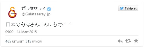 Galatasaray Japonya resmi Twitter hesabında ilk mesajlar ise kulübün yıldız isimleri Sneijder ve Muslera tarafından verildi. Wesley Sneijder ve Fernando Muslera, Japonca olarak "Herkese merhaba, Galatasaray artık Japonya'da" şeklinde Uzak Doğu'ya görüntülü mesaj gönderdi.