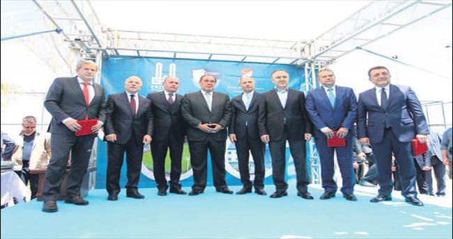 Başakşehir-Fenerbahçe maçıyla ilgili 'aynı saatte oynansın' başvurusuyla gözlerin çevrildiği Türkiye Futbol Federasyonu Başkanı Yıldırım Demirören, Büyükşehir Belediye Erzurumspor'un tesisleri ve tesislere yapılacak futbol sahasının temelini attı.