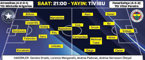 Kırmızı kart cezalısı Kjaer ile sakat olan Gökhan maçta forma giyemeyecek. Peristeri Stadı'nda oynanacak ve İtalyan hakem Daniele Orsato'nun yöneteceği mücadele Türkiye saati ile 21.00'de başlayacak.