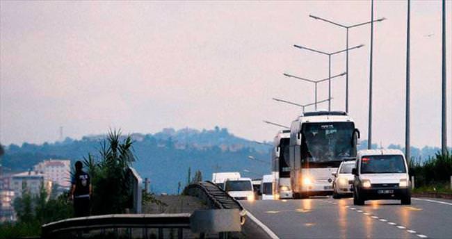 Geçen sene saldırının olduğu Trabzon-Rize karayolunda polis özel önlemler aldı. Araklı ilçesinin girişindeki viyadükte ise polisler nöbet tuttu. Kafileye 8 tane polis aracı eskortluk yaptı.