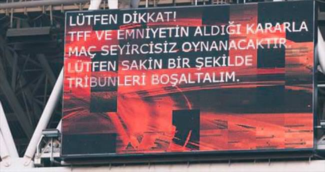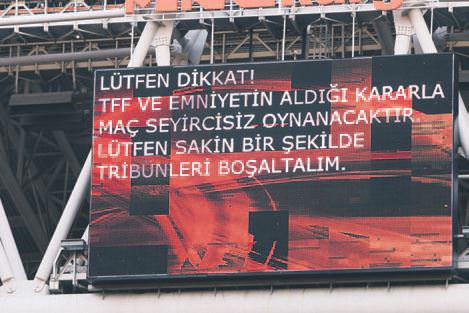 Skorbordlardan "Lütfen dikkat! TFF ve Emniyet'in aldığı kararla maç seyircisiz oynanacaktır. Lütfen sakin bir şekilde tribünleri boşaltalım" uyarısı yapıldı. Taraftar, polis kontrolünde stattan çıktı.