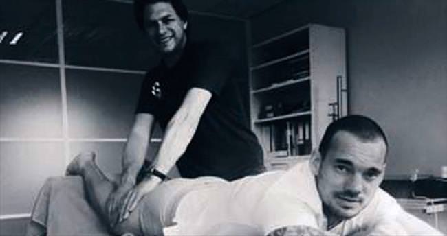Tedavisine devam edilen Galatasaray'ın Hollandalı yıldızı Wesley Sneijder, dün Instagram'dan paylaştığı fotoğrafın altına, 'Sahalara mümkün olduğunca çabuk dönebilmek için çalışıyorum' mesajını yazdı.