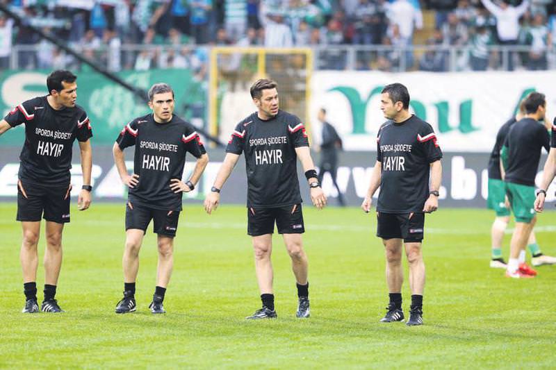 karşılaşmasının hakemleri ısınmaya üzerinde "Sporda şiddete hayır" yazılı tişörtler giyerek çıkarak, Trabzonspor-Fenerbahçe maçında hakem Volkan Bayarslan'a yapılan saldırıya tepki gösterdi. Ayrıca Trabzon'daki saldırı sonrası Merkez Hakem Kurulu'nun aldığı karar üzerine mücadele iki dakika geç başladı.