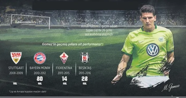 Geçen sezon Beşiktaş'ta ligde 26 kez ağları havalandırarak gol kralı olan Mario Gomez, bu sezon Wolfsburg formasıyla çıktığı 5 karşılaşmada skora katkıda bulunamadı.