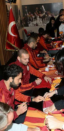 Sarı-kırmızılıların futbol takımı oyuncularından Selçuk İnan, Wesley Sneijder, Sabri Sarıoğlu, Fernando Muslera, Bruma, Eren Derdiyok, Hakan Balta, Tolga Ciğerci ve Lionel Carole ile Teknik Direktör Jan Olde Riekerink, Florya'daki GSStore'da taraftarla bir araya geldi.