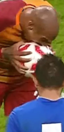 Türkiye Kupası'nda Dersimspor'u 5-1 mağlup eden Galatasaray'da Hollandalı orta saha Nigel De Jong ilginç bir hareketin altına imza attı. De Jong, rakibine faul yaptığı pozisyonun ardından yerden topu eline alarak ısırdı.