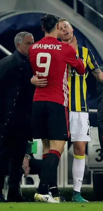 Sakatlanan Pogba'nın yerine oyuna giren Zlatan, kaptırdığı bir topun ardından Fenerbahçeli Kjaer'in boğazına sarıldı.