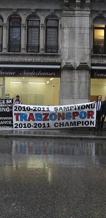 İsviçre'ye gelen bir grup bordo-mavili taraftar, toplantının yapıldığı otel önünde, Trabzonspor Kulübünün yaptığı şikayet başvurusuna destek amacıyla kısa bir gösteri düzenledi.