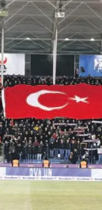 Osmanlıspor ve Galatasaray takımları seremoniye "Terörü lanetliyoruz" pankartı ile çıkarken, tribünlerde dev Türk bayrağı açıldı.