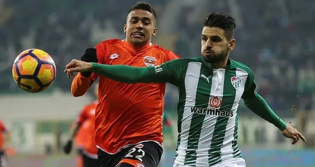 31. dakikada Bursaspor atağında Jorquera'nın Adanaspor ceza sahası içine ara pasında Deniz Yılmaz'ın dokunamadığı top, Kubilay Kanatsızkuş'un önünde kaldı. Bu oyuncunun sağ çaprazdan yaptığı vuruşta ise meşin yuvarlak az farkla yandan dışarı gitti.