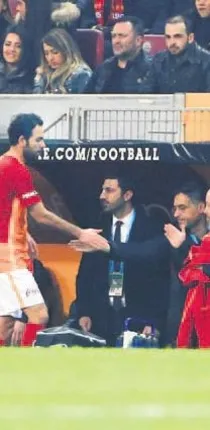 Kaptan Selçuk İnan derbide oyundan çıktıktan sonra yedek kulübesindeki herkesle tek tek tokalaşıyor. (üstte) Sabri'yi es geçti Bu esnada takımdaki kaos bir kez daha gün yüzüne çıkıyor. Selçuk, küs olduğu Sabri'nin yüzüne bile bakmıyor.