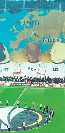 Beşiktaşlı taraftarlar, Olympiakos maçı öncesi Vodafone Arena tribünlerinde ilk kez koreografi şov yaptı. 1903 tribününde yapılan koreografide, Avrupa Ligi finalinin oynanacağı İsveç'in başkenti Stockholm'e giden bir uçak dünya haritası üzerinde resmedildi. Haritanın altında ise 3 futbolcu ve "Fight for us" (Bizim için savaş) yazıldı. Ezeli rakiplerin sosyal medyada acemice bulduğu görsel şov, UEFA'nın resmi hesabından "Beşiktaş taraftarlarından muhteşem tribün şovu" sözleriyle övüldü.