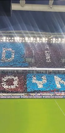 Trabzonspor'un simgelerinden olan 'Dik oyna' sloganı, Doğu Tribünü'nde koreografi olarak sergilendi. Taraftarlar, bordomavili bayraklarla takımlarına 90 dakika boyunca destek verdi.