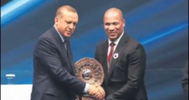 Cumhurbaşkanı Erdoğan, Futbol Zirvesi'ne katılan Ferdinand'a plaket verdi.