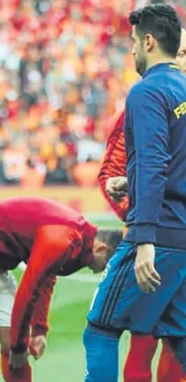 G.Saraylı Sabri Sarıoğlu ile F.Bahçeli Volkan Demirel arasındaki yüksek gerilim dün de maçtan önce kendini gösterdi. Seremonide futbolcular el sıkışırken, Volkan önünden geçtiği sırada Sabri çorabını düzeltmek için yere eğilince tokalaşma gerçekleşmedi.