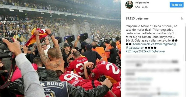 Brezilya'nın SE Palmeiras takımında forma giyen Galatasaray'ın eski futbolcusu Felipe Melo, sarı-kırmızılılar ile 12 Mayıs 2012'de Ülker Stadyumu'nda kazandığı şampiyonluğu unutmadı. Spor Toto Süper Lig'de 2011-2012 sezonunda Süper Final'in son maçında Fenerbahçe ile 0-0 berabere kalarak şampiyon olan Galatasaray'ın kadrosunda bulunan Brezilyalı futbolcu, sosyal medya hesabından bir fotoğraf paylaşarak,
