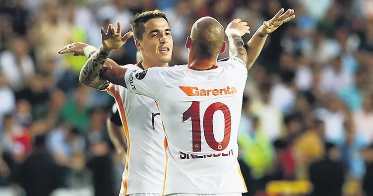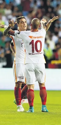 Ev sahibinin kaçırdığı pozisyonların ardından Aslan'daki geleceği tartışılan Sneijder, usta işi bir frikikle ağları sarstı, G.Saray'ı Avrupa yarışında rahatlattı.