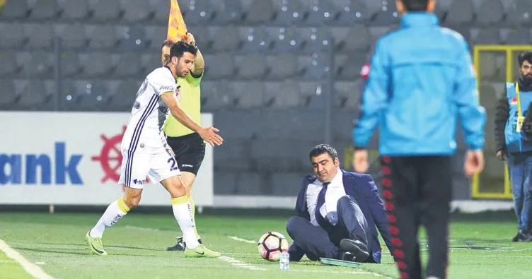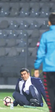 G.Birliği'nin hocası Ümit Özat maçta talihsiz bir olay yaşadı. Ayağı logar kapağına takılan Özat, yere düştü.