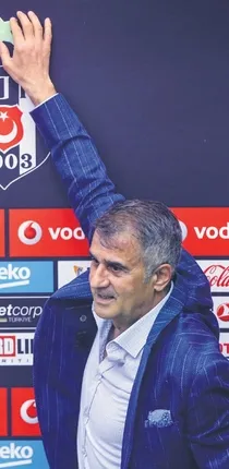 Şenol Güneş, basın toplantısının sonunda arkasında bulunan panoda yer alan Beşiktaş amblemine üçüncü yıldızı taktı. Tecrübeli hoca, 3 yıldızlı logoyla basın mensuplarına görüntü verdi.