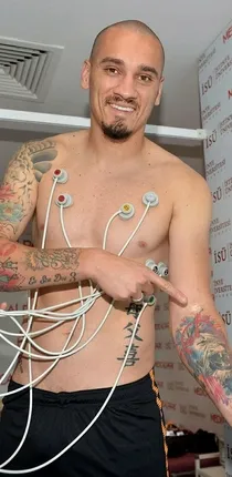 Dün sağlık kontrolünden geçirilen Maicon, kolundaki aslan dövmesini göstermeyi ihmal etmedi.