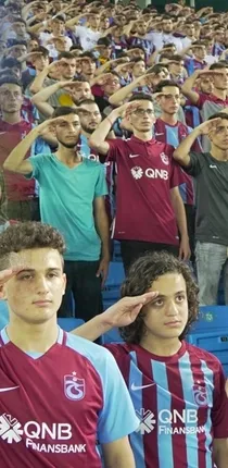 Trabzonspor sahaya "Şehitlerimizi saygıyla anıyoruz ve #iyikivarsıneren" pankartıyla çıktı. Stadın dört bir yanında Eren'i hatırlatan pankartlar açıldı.