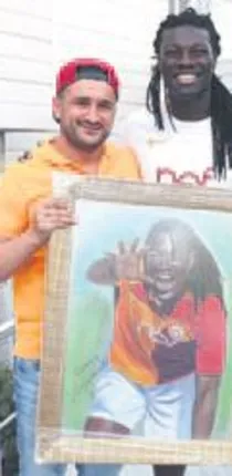 Zafer Yıldırım isimli taraftar, Gomis'e çok özel bir tablo hediye etti. Kendisine has gol sevincini tabloda gören Fransız forvet, Hatay'dan gelen taraftarın hediyesi karşısında duygulandı. Gomis taraftara verdiği gol sözünü de maçta tuttu. Bu arada Gomis dün iznini çalışarak geçirirken bu anları sosyal medyadan paylaştı.