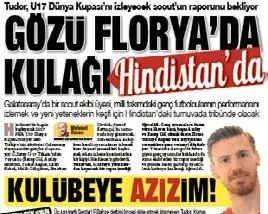 SABAH dünkü haberinde, U17 Dünya Kupası'nda, Türkiye'nin kadrosunda 7 G.Saraylı futbolcu olduğunu ve sarı-kırmızılı kulübün hem bu gençleri hem de yeni yetenekleri izlemek için Hindistan'a bir yetkili gönderdiğini yazmıştı.