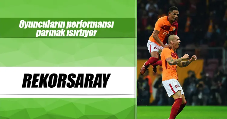 Gençlerbirliği karşısında attığı 10 isabetli şut ile sezon rekoru kıran Galatasaray, 5 gollü galibiyet alırken, aynı zamanda çok sayıda futbolcusu da sezon karnesi ile kariyer rekorlarını kırdı. İşte Aslan'ın rekor kıran oyuncuları: 4 Geride kalan sezonun tamamında en golcü ismi 11 golle Bruma olan Galatasaray'da, Gomis 11 haftada 11 gol attı ve 3 asist yaptı. Fransız yıldız kariyerinde ilk defa çift haneli gol sayısına bu kadar kısa sürede ulaştı. 4 Brezilyalı stoper Maicon, 11 haftada 4 kez ağları havalandırarak, kariyerinin en fazla gol attığı sezonu geçiriyor. 4 Tolga Ciğerci, bu sezon öncesinde kariyeri boyunca 4 gol atmasına rağmen, bu sezon 6 gol atmayı başardı. Ciğerci, geride kalansezonda 43 şut atmış, yine de golü bulamamıştı. Bu sezon ise 20 şutta 6 gole ulaştı. Aynızamanda Avrupa'nın beş büyük ligi ve SüperLig'de en fazla gol atan orta saha oyuncularındanbirisi Tolga Ciğerci. 4 Bu sezon 1 gol, 2 asist rakamına 11 haftada ulaşan Mariano, 964 dakikada 3 gole etki etti. Brezilyalı, son sezonunda ise La Liga'da Sevilla'da23 maçta bin 689 dakika forma giymişancak 3 asist yapabilmişti. 2016-17 sezonunda La Liga'da 31 maçta 2 gole katkı yapan Mariano, G.Saray'daki 11. maçında 3. gol katkısını yaptı.