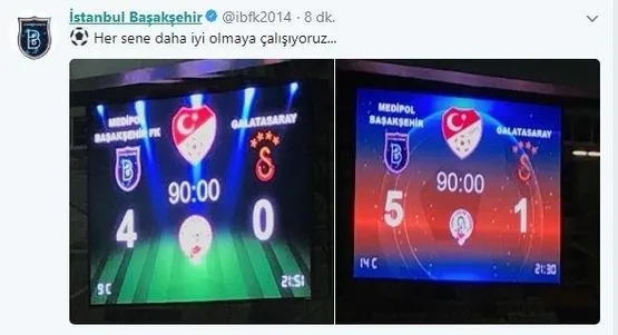 Süper Lig'in 12. haftasında Medipol Başakşehir sahasında Galatasaray'ı ağırladı. Mücadeleyi Başakşehir farklı bir skorla 5-1 kazandı. Mücadele sonrasında Medipol Başakşehir resmi Twitter adresinden Galatasaray'a gönderme niteliğinde bir paylaşım yapıldı.