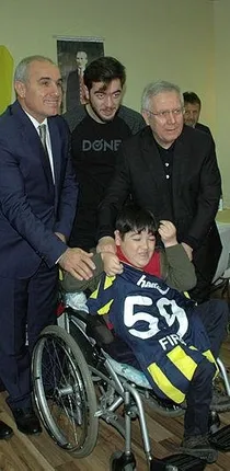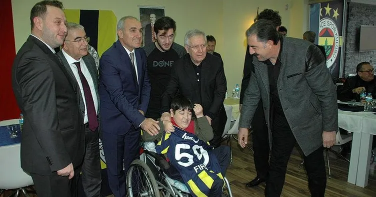 F.Bahçe Başkanı Aziz Yıldırım, dün Tekirdağ'ın Çorlu ilçesinde Fenerbahçeliler Derneği'ni ziyaret etti. Üyelerle kahvaltı eden Yıldırım, daha sonra kulübe yeni üyelerin formlarını imzalayarak, hatıra fotoğrafı çektirdi. Başkan engelli Fırat Çakin'e (13) imzalı Fenerbahçe formasını hediye edip, maç izlemesi için İstanbul'a davet etti.