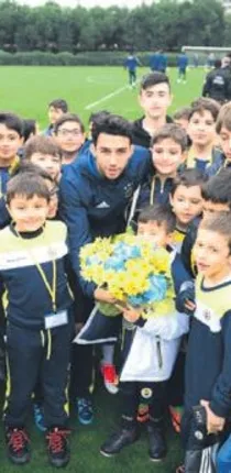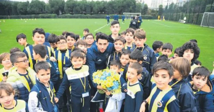 MİNİKLERDEN ZİYARET- Sarı-lacivertlilerin dünkü idmanını Arnavutköy F.Bahçe futbol okulu öğrencileri de izledi. Minikler İsmail'e çiçek verd