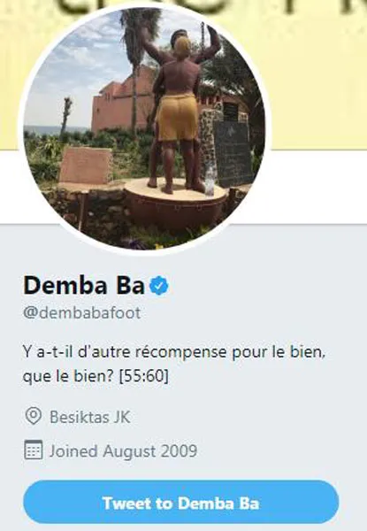 Beşiktaş Kulübü'ne geri döneceği konuşulan Senegalli golcü futbolcu Demba Ba, sosyal medya hesabı Twitter'daki konumunu "Beşiktaş JK" olarak değiştirdi.