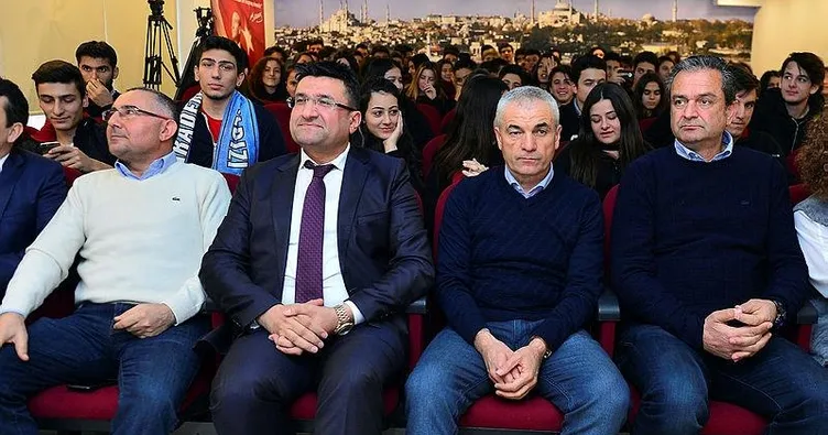 Öğrenciler, yakın ilgi gösterdikleri Çalımbay'ı Trabzon atkılarıyla karşıladı.