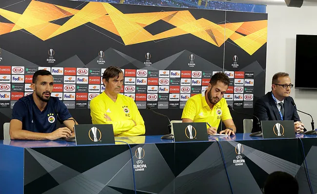 Cocu, maçın oynanacağı başkent Zagreb'deki Maksimir Stadı'nda sarı-lacivertli takımın futbolcularından Mehmet Topal ile basın toplantısı düzenledi.