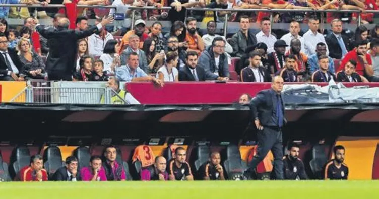 Fatih Terim, sadece G.Saray'ı değil, tribünleri de yönetti! Maçın ilk yarısında taraftarın suskun kaldığını gören Terim, hemen yedek kulübesinin arkasında oturan ikinci başkan Abdurrahim Albayrak'ı uyardı.