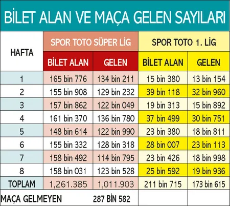 Süper Lig'in en ilginç verisi ise kombinesi ve maç bileti olmasına rağmen tribüne gelmeyen taraftarlardan ortaya çıktı. Şu ana kadar Süper Lig'de 1 milyon 261 bin 385 taraftar bilet ya da kombine ile maça girmeye hak kazanırken, bu kişilerin neredeyse 5'te 1'i yani 249 bin 482'si (%19,77) maça gelmedi. Benzer bir tablo Spor Toto 1.Lig'de de yaşandı. Burada da maça girme hakkı olan 211 bin 715 kişinin 38 bin 100'ü (%17,99) maça gelmemeyi tercih etti.