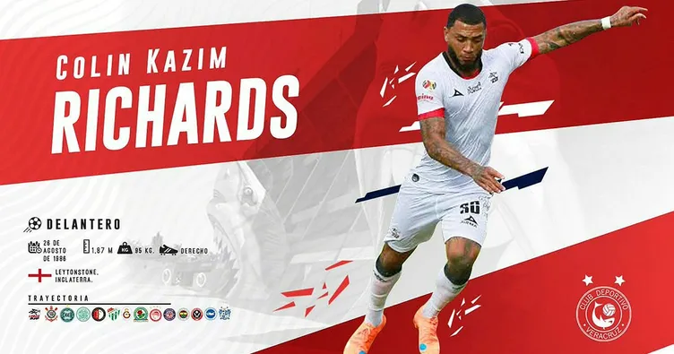 Bir dönem Fenerbahçe, Galatasaray ve Bursaspor forması giyen eski milli futbolcu Colin Kazım Richards, Meksika ekibi Rojos de Veracruz ile sezon sonuna kadar sözleşme imzaladı.