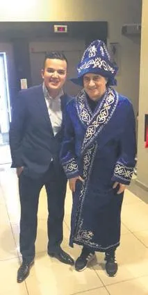 Kıyafeti giyen tecrübeli hocayı, Kazak taraftarlar ülkelerine davet etti.