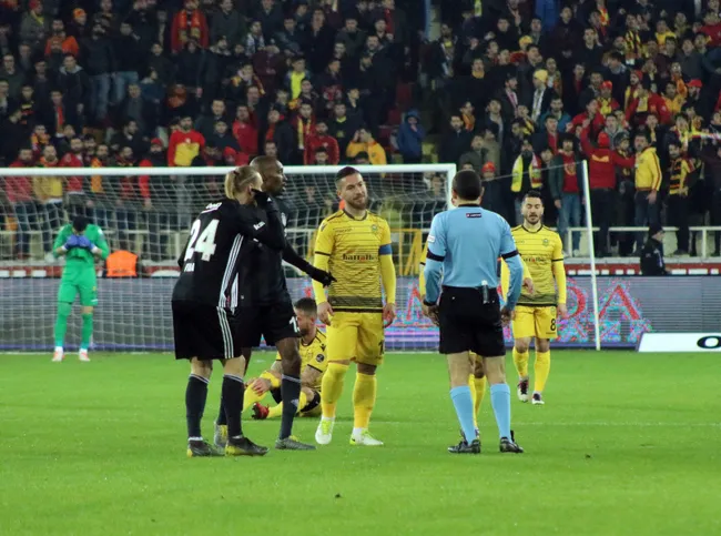 Evkur Yeni Malatyaspor'un kaptanı Adem Büyük, Video Yardımcı Hakem (VAR) uygulaması sonrasında kırmızı kartla cezalandırıldı. Mücadelenin 41. dakikasında Beşiktaşlı Jeremain Lens'e arkadan müdahalede bulunan Adem Büyük'e hakem Cüneyt Çakır sarı kart gösterdi. VAR uyarısıyla pozisyonu saha kenarındaki monitörden yeniden inceleyen Cüneyt Çakır, tecrübeli oyuncuyu direkt kırmızı kartla oyun dışı bıraktı.