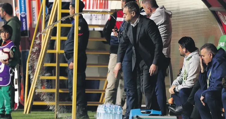 Fenerbahçe Teknik Direktörü Ersun Yanal, saha kenarında bir hayli sıkıntılıydı. Tecrübeli çalıştırıcı, su içtiği sırada gol gelince yutkunamadı. Ağzındaki suyu püskürttü, acısını da şişeden çıkardı.