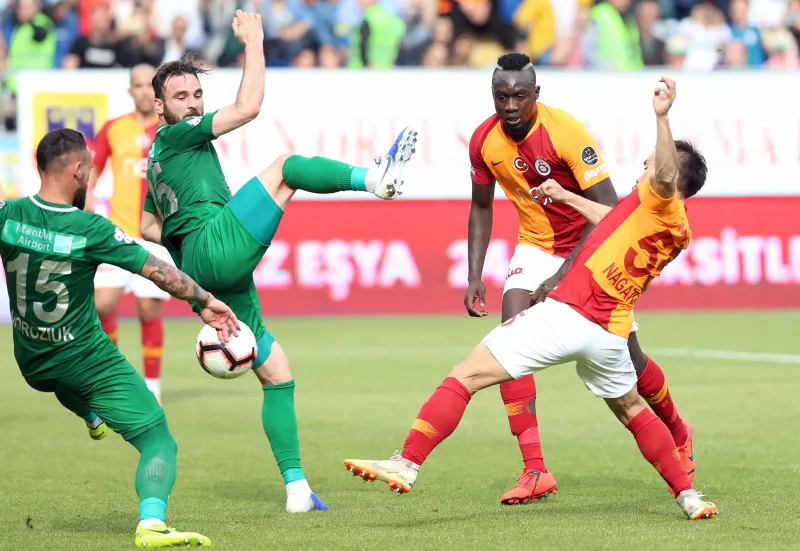 Ligin 32. haftasında Çaykur Didi Stadı'nda Karadeniz temsilcisine konuk olan sarı-kırmızılı ekip, 9. dakikada Sofiane Feghouli'nin golüyle öne geçti. Galatasaray, ilk yarının son anlarında Vedat Muric'in golüne engel olamayınca devre arasına 1-1 beraberlikle girildi.