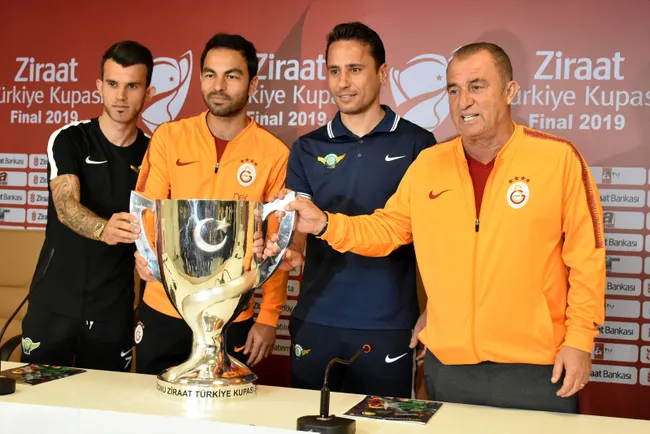 Ziraat Türkiye Kupası finalinde yarın Yeni 4 Eylül Stadı'nda oynanacak Akhisarspor-Galatasaray karşılaşmasının öncesinde sarı-kırmızılı takımın teknik direktörü Fatih Terim ve kaptan Selçuk İnan, basın toplantısı düzenledi.