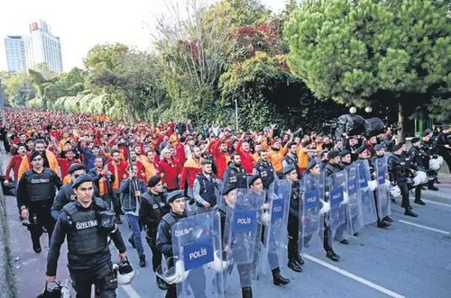 2 bin 100 Galatasaraylı taraftarlar Vodafone Park'a toplu halde yürüyerek geldi. Stadın etrafında geniş güvenlik önlemleri alındı.