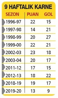 Sarı-kırmızılı kulübün başında 10 farklı sezonda görev alan Fatih Terim için bu dönem kâbus oldu. Terim döneminde daha önceki 9 sezonun ilk 9 haftasında ortalama 19 puan alan sarı-kırmızılılar, 18 gol bulmuştu. Bu sezon ise G.Saray ile en kötü ilk 9 haftasını geçiren İmparator, 9 haftanın ardından 13 puanda kalırken rakip ağlar sadece 9 kez bulundu.